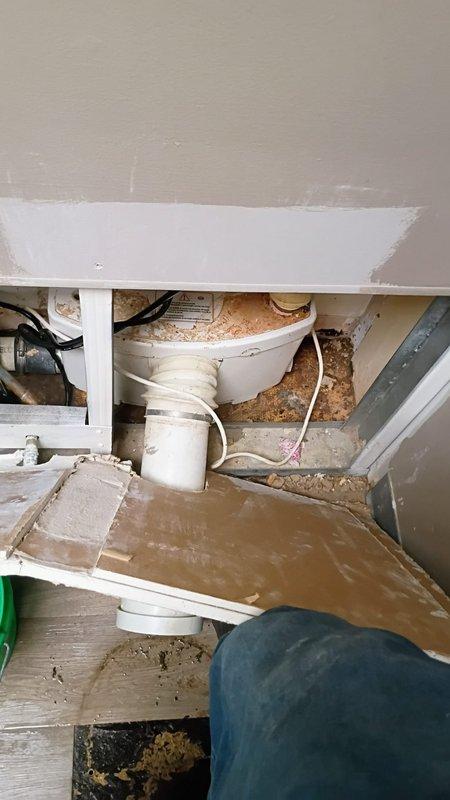 Conducted on-site assessment of bathroom for tub and shower removal and insert installation. Observed existing bathroom layout including toilet, fixtures, and plumbing connections. Discovered damaged insulation and inspected accessible plumbing infrastructure behind wall, noting current copper pipe configuration that will require modification during installation. Customer advised that while plumbing work can be completed, separate contractor would be needed for any drywall and flooring modifications.